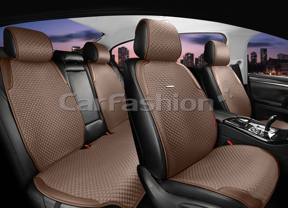Главная / Чехлы и накидки на сиденья / Накидки на сиденья PREMIUM / Комплект Накидок 2D «SLEEK PLUS» коричневый/коричневый/коричневый Материал: полиэстер/экокожа