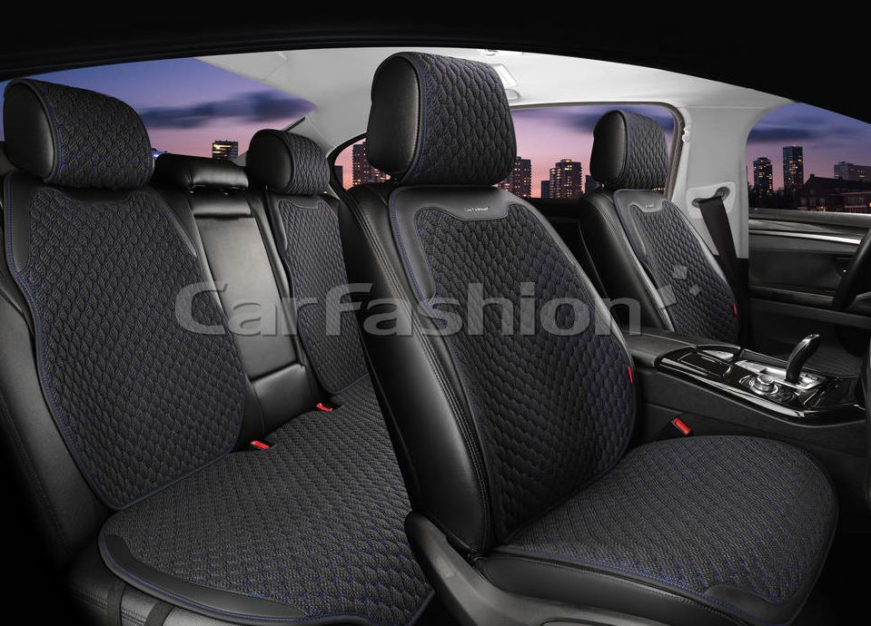 Главная / Чехлы и накидки на сиденья / Накидки на сиденья PREMIUM / Комплект Накидок 2D «TERRA PLUS» черный/черный/синий, твид/экокожа