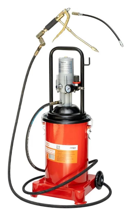 Главная / Инструмент / Смазочное оборудование / Нагнетатель смазки с пневматическим насосом 50:1 и емкостью 12л SIPL