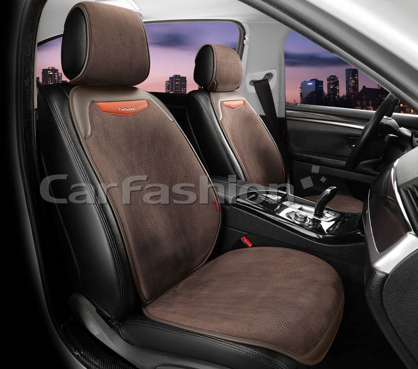 Главная / Чехлы и накидки на сиденья / Накидки на сиденья PREMIUM / Накидки Фронт 2D «TRIO FRONT» коричневый/коричневый/оранжевый/коричневый Материал: искусственная зам