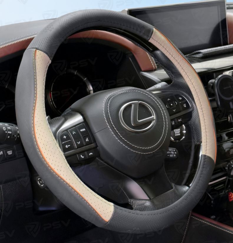 Главная / Оплетки на руль автомобиля / Оплетки PSV / Оплетка на руль кожаная PSV MIX (Черно-серый/Кант оранжевый) M, с перфорацией
