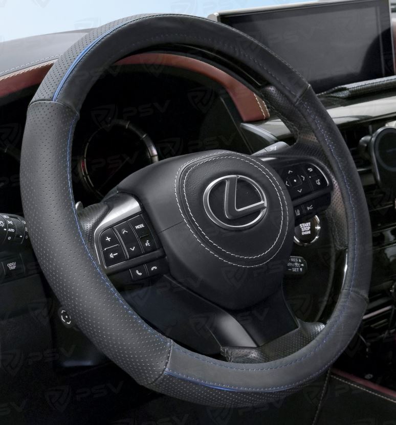Главная / Оплетки на руль автомобиля / Оплетки PSV / Оплетка на руль кожаная PSV POINT (Черно-Синий) M, с перфорацией
