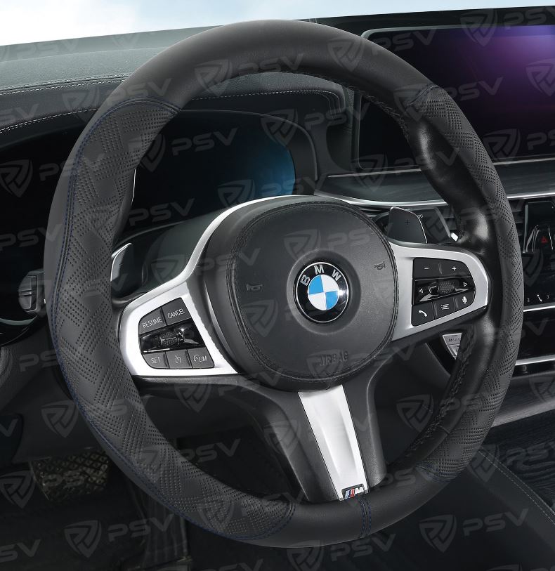 Главная / Оплетки на руль автомобиля / Оплетки PSV / Оплетка на руль PSV BEVEL (Черный/Отстрочка синяя) M, экокожа