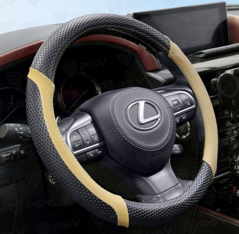 Главная / Оплетки на руль автомобиля / Оплетки PSV / Оплетка на руль PSV RECT Fiber (Черно-Бежевый) М, экокожа