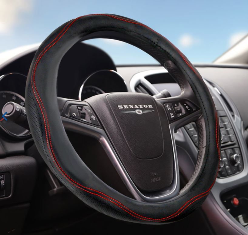 Оплетка на руль SENATOR Omaha гладкая экокожа с вставками из перфорированной экокожи, M /черный/