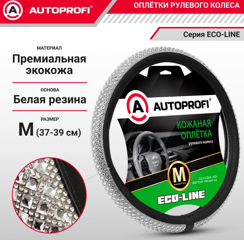 Главная / Оплетки на руль автомобиля / Оплетки AUTOPROFI / Оплётка руля, серия Eco-Line, премиальная экокожа, центральная вставка с кристаллами в стиле "Swarov