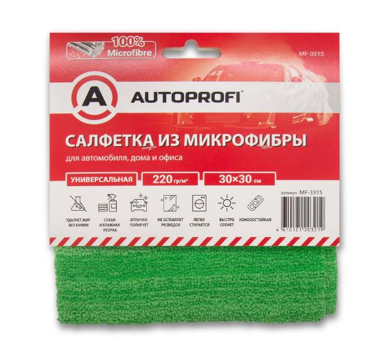 Главная / Уход за авто / Салфетки, губки, полотенца, варежки / Салфетка из микрофибры "AUTOPROFI" стандарт, 220 гр/м2., 30х30 см., 1шт.