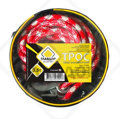 Главная / Автоаксессуары / Троса, карабины, крюки / Трос буксировочный 3,5т "ГЛАВДОР" GL-252 шнур альпинистский 12 мм, 2 крюка, в сумке /15
