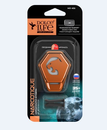 Главная / Ароматизаторы / Ароматизаторы на дефлектор / Ароматизатор на дефлектор Dolce Life меловой Narcotique Ягуар MX-406 /1/12/
