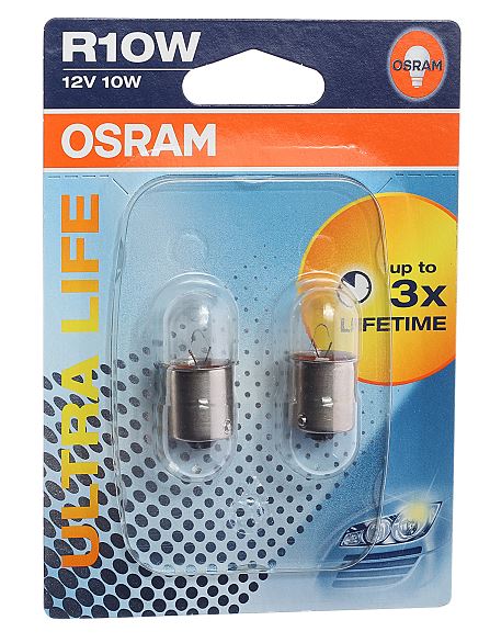 Главная / Автосвет / Автолампы OSRAM п-во Германия / Osram12V / Автолампа R10W (BA15s) ULTRA LIFE (блистер, 2шт) 12V OSRAM /1/10