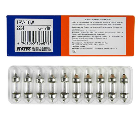Главная / Автосвет / Автолампы KOITO п-во Япония / Автолампы KOITO 12V / Автолампа T10x31 12V 10W KOITO кратно 10шт. 2254