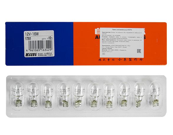 Главная / Автосвет / Автолампы KOITO п-во Япония / Автолампы KOITO 12V / Автолампа T16 без цоколя 12V 16W (ECE) W16W KOITO кратно 10шт.