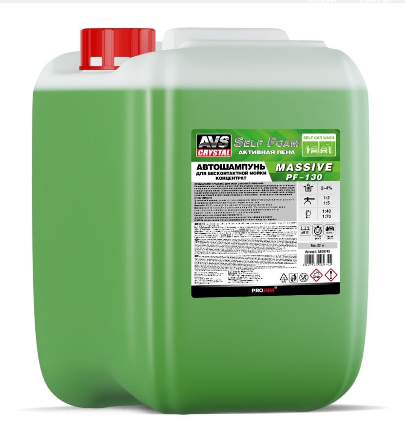 Главная / Автохимия и автокосметика / Средства для мойки авто / Автошампунь для б/к мойки AVS "Self Foam" 1:2-5 PF-130 MASSIVE 22 кг, шт