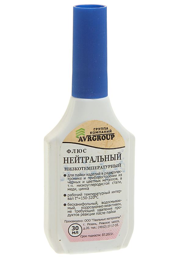 Главная / Паяльники и расходные материалы / Флюс нейтральный низкотемпературный 30мл флакон ВТО
