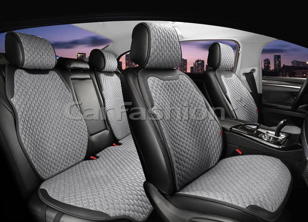 Главная / Чехлы и накидки на сиденья / Накидки на сиденья PREMIUM / Комплект Накидок 2D «TERRA PLUS» серый/черный/серый, твид/экокожа