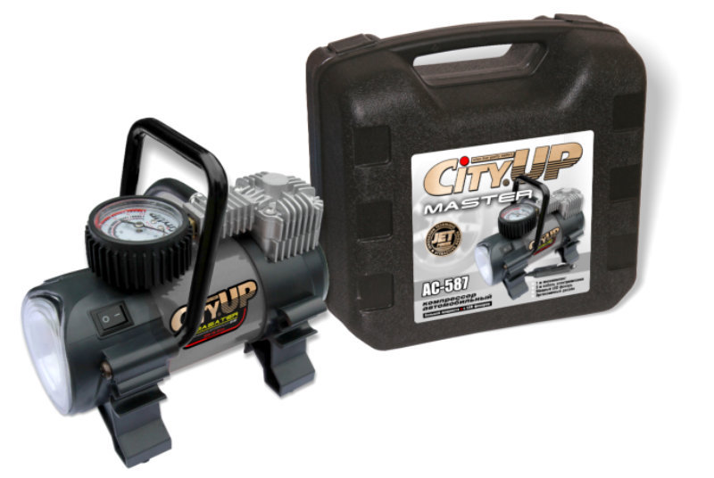 Главная / Компрессоры автомобильные. Насосы ножные, ручные / Компрессоры автомобильные / Компрессор 35л/мин 180W CityUP Master с фонарем 10Атм, АС-587 /1/6/