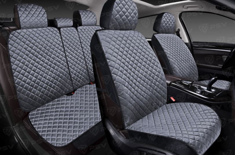 Главная / Чехлы и накидки на сиденья / Накидки на сиденья / Накидки 3D PSV Kvadrat Next (Черно-Серый), комплект на весь салон, велюр