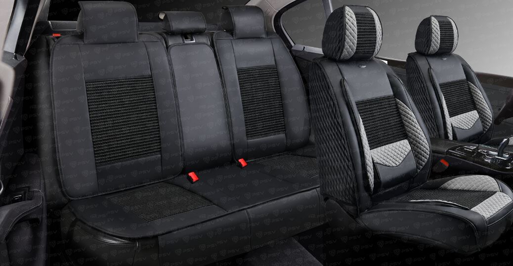 Главная / Чехлы и накидки на сиденья / Накидки на сиденья / Накидки 5D PSV Volt (Черно-Серый), комплект на весь салон, экокожа + льняное плетение (НОВИНКА)