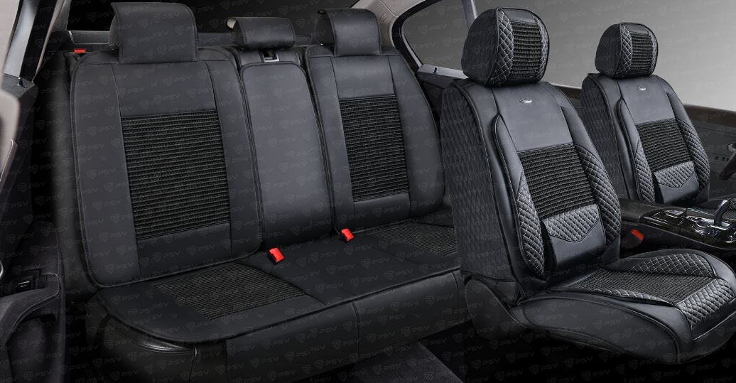 Главная / Чехлы и накидки на сиденья / Накидки на сиденья / Накидки 5D PSV Volt (Черный/Отстрочка Белая), комплект на весь салон, экокожа + льняное плетение (