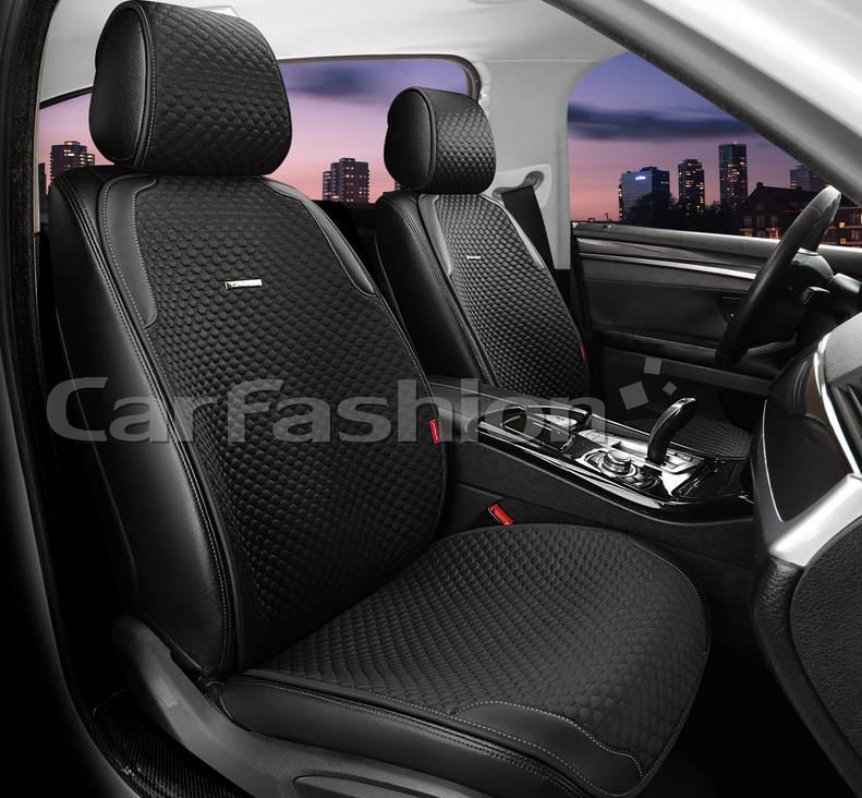 Главная / Чехлы и накидки на сиденья / Накидки на сиденья PREMIUM / Накидки Фронт 2D «SLEEK FRONT» черный/черный/серый Материал: полиэстер/экокожа