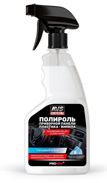Главная / Автохимия и автокосметика / Полироли салона / Полироль для приборной панели глянцевый (триггер) 500 мл. "Горная свежесть" AVS AVK-906 /1/12/