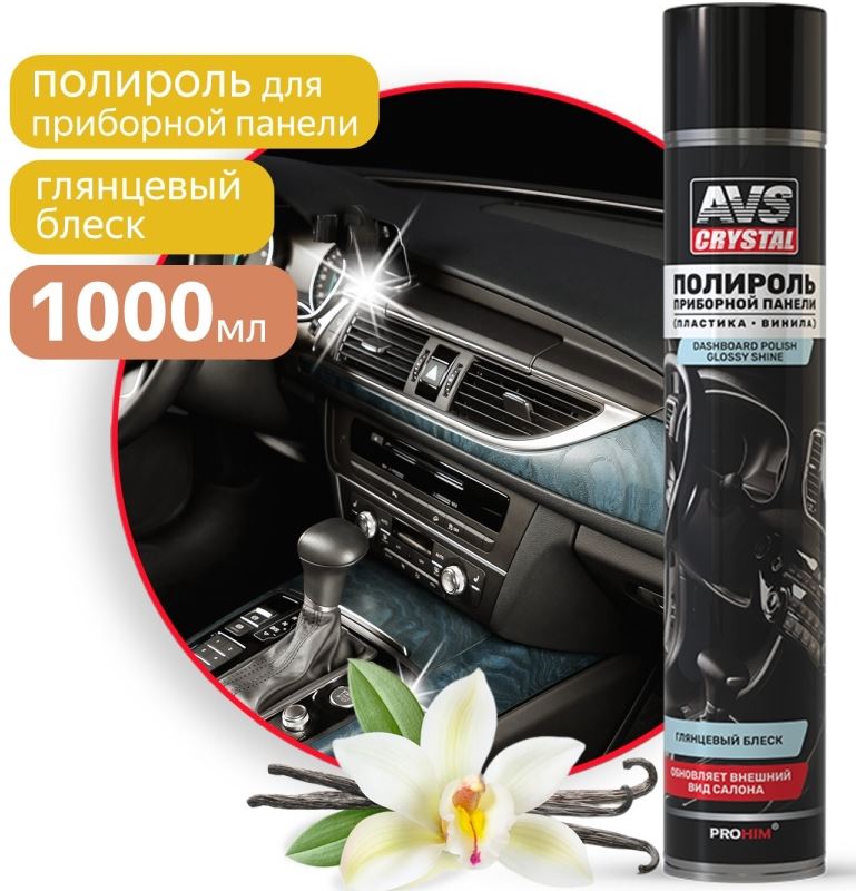 Главная / Автохимия и автокосметика / Полироли салона / Полироль для приборной панели "Ваниль" (аэрозоль) глянцевый 1000 мл. AVS AVK-812 /1/12/