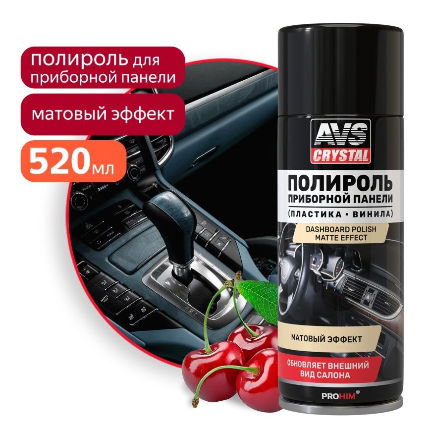 Полироль для приборной панели "Вишня" (аэрозоль) матовый 520 мл. AVS AVK-863 /1/12/