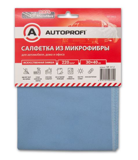 Главная / Уход за авто / Салфетки, губки, полотенца, варежки / Салфетка из микрофибры "AUTOPROFI" искусственная замша, 220 гр/м2., 30х40 см.,1шт.