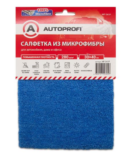 Главная / Уход за авто / Салфетки, губки, полотенца, варежки / Салфетка из микрофибры "AUTOPROFI" повышенной плотности, 280 гр/м2., 40х50 см.,1шт.