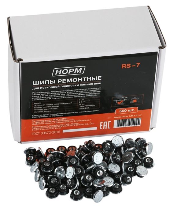 Главная / Товары для колес, шиномонтажа / Ремкомплекты шиномонтаж / Шипы ремонтные 12×7мм 500шт. НОРМ RS-7