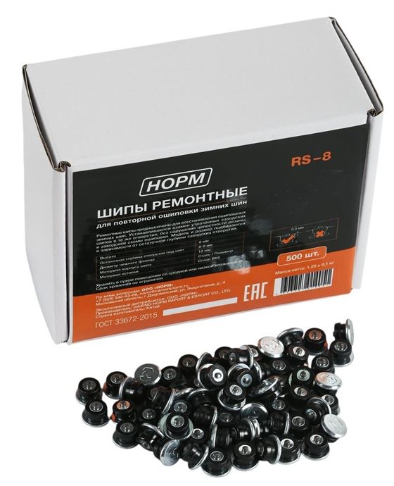 Главная / Товары для колес, шиномонтажа / Ремкомплекты шиномонтаж / Шипы ремонтные 12×8мм 500шт. НОРМ RS-8