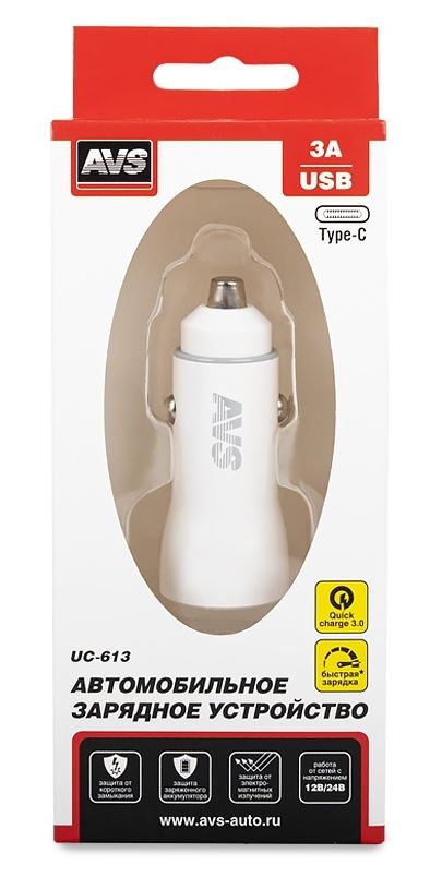 Главная / Электротовары / Зарядные устройства для телефона, ноутбука / Автомобильное ЗУ AVS UC-613, 1 QC USB/1 PD Type-C, 6.0 А, 38 Вт (A40787S), шт