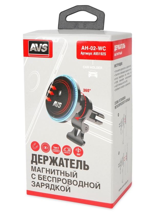 Главная / Автоаксессуары / Внутрисалонные аксессуары / Держатели телефонов и мобильных устройств / Держатель для смартфонов с беспр.зарядкой магнитный в дефлектор MagSafe AVS AH-02-WC, шт