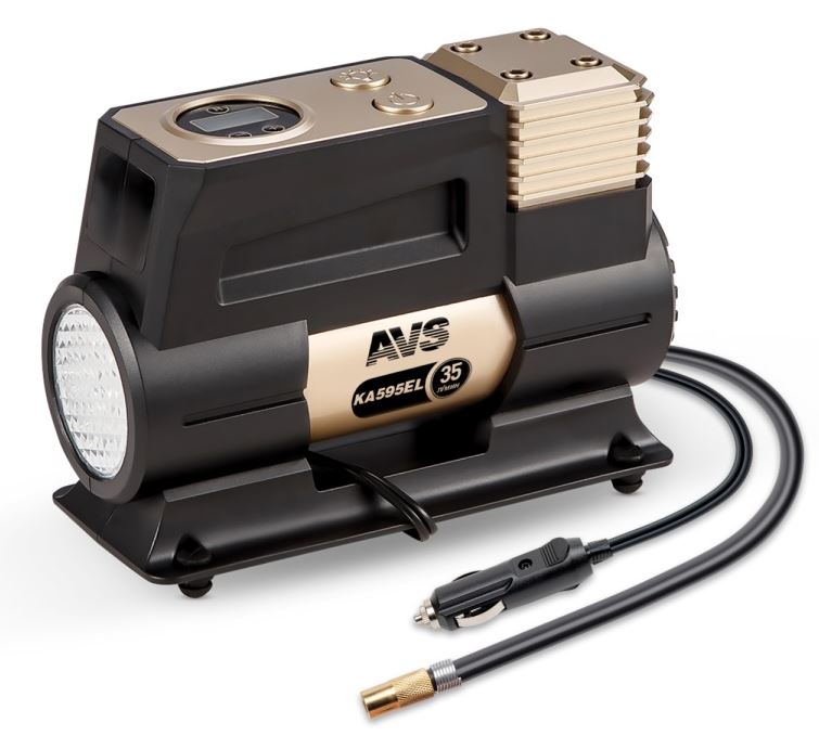 Главная / Компрессоры автомобильные. Насосы ножные, ручные / Компрессоры автомобильные / Компрессор автомобильный 35л 10Атм 150 w 12в AVS КА595EL, шт