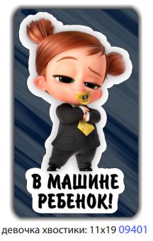 Главная / Автонаклейки / Наклейки перевозка детей / Наклейка "В машине ребенок" (11х19 см),девочка хвосты (09401) шт /10/