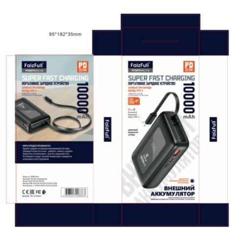 Главная / Электроника / Внешние аккумуляторы / Внешний аккумулятор (MINI Power Bank) FL114 10,000mAh PD22,5W Выдвижной кабель Type-c 60см