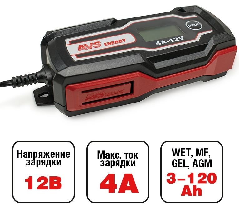 Главная / Зарядка и обслуживание АКБ / Зарядные устройства для АКБ / Зарядное устройство для автомобильного аккумулятора AVS BT-4S (4A, 51W) 12V, шт