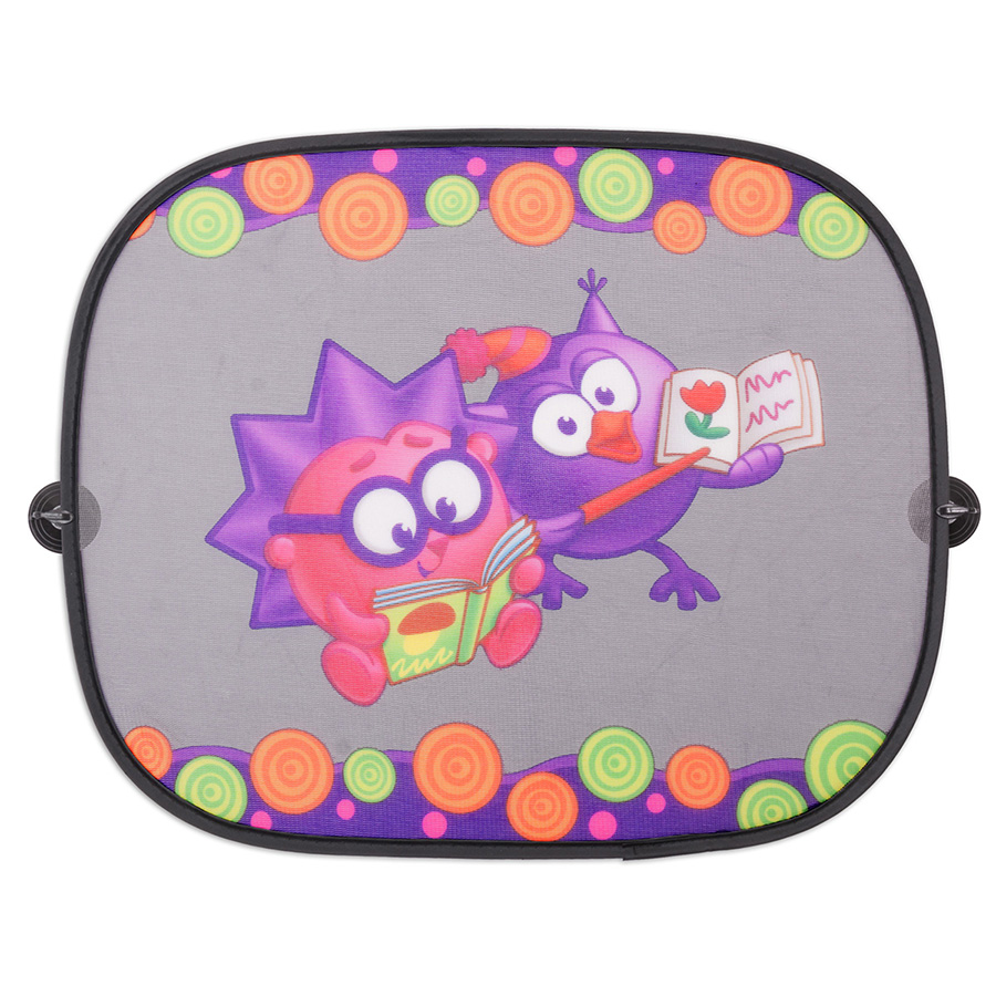 Шторка - экран на боковое окно "Смешарики", 44х36см, 2 шт., осн. цвет чёрный, сетчатая ткань, крепле