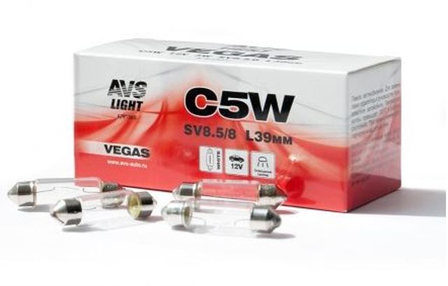 Главная / Автосвет / Автолампы AVS / Лампы освещения салона AVS 12V. / Автолампа AVS Vegas 12V.С5W(SV8.5/8)L39мм.BOX(10 шт.)