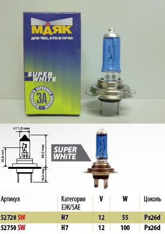 Главная / Автосвет / Автолампы МАЯК / Маяк 12V / Автолампа Н7 Маяк 12- 55 Px26d SUPER WHITE, 10/100/400