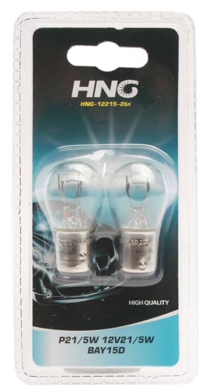 Главная / Автосвет / Автолампы HNG / HNG 12V / Автолампа P21/5W BAY15d (блистер, 2шт) 12V HNG /1/100
