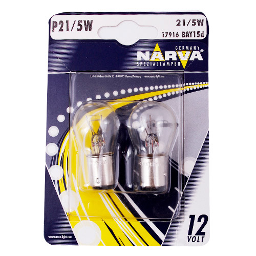 Главная / Автосвет / Автолампы NARVA п-во Германия / Narva12V / Автолампа P21/5W (BAY15d) (блистер, 2шт) 12V NARVA /1/10