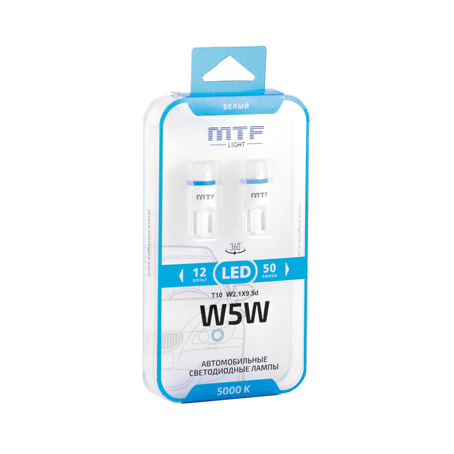 Автолампа W5W/T10 MTF Light светодиодная 12В, 1Вт, 5000К(белый свет), линза матовая, Тайвань, 2шт
