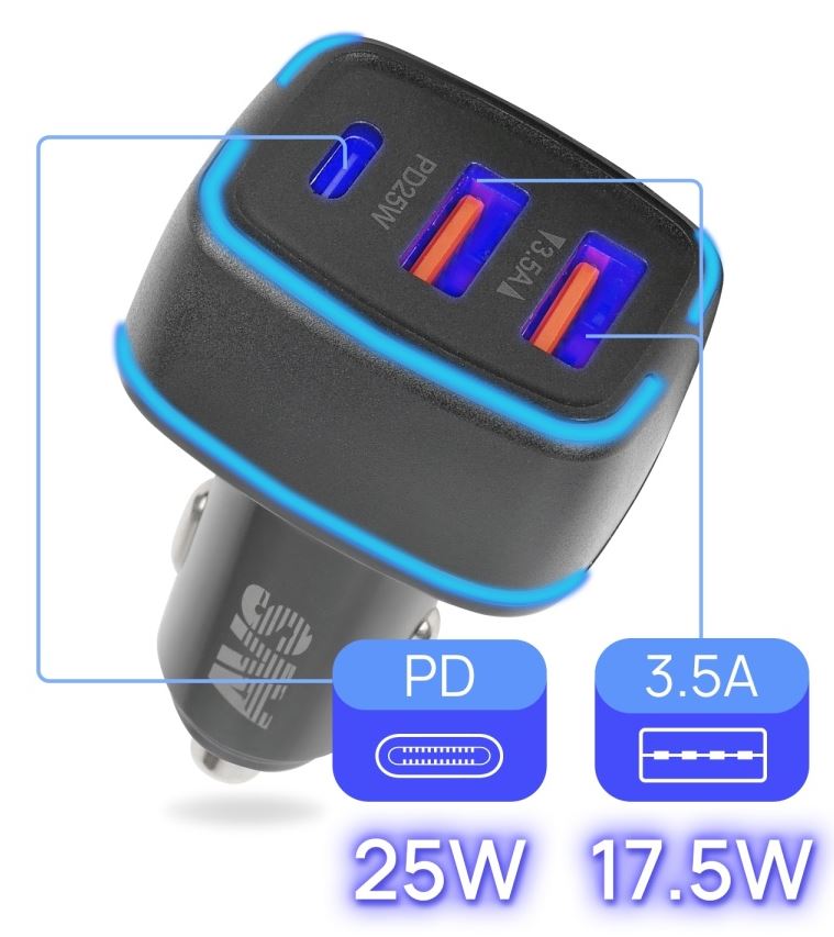 Главная / Электротовары / Зарядные устройства для телефона, ноутбука / Автомобильное ЗУ AVS UC-742, 2 USB/1 PD Type-C, 6.5 A, 42.5 Вт (A07317S), шт