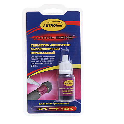 Главная / Автохимия и автокосметика / Герметики.Фиксаторы резьбы / Герметик фиксатор резьбы ASTROhim сверхсильной фиксации (от -60С до +150С) 6мл /1/24
