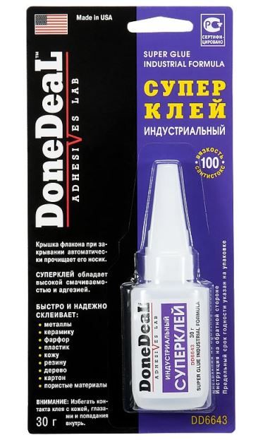 Главная / Автохимия и автокосметика / Клей / Клей супер DONE DEA 30 г.индустриальный DD6643