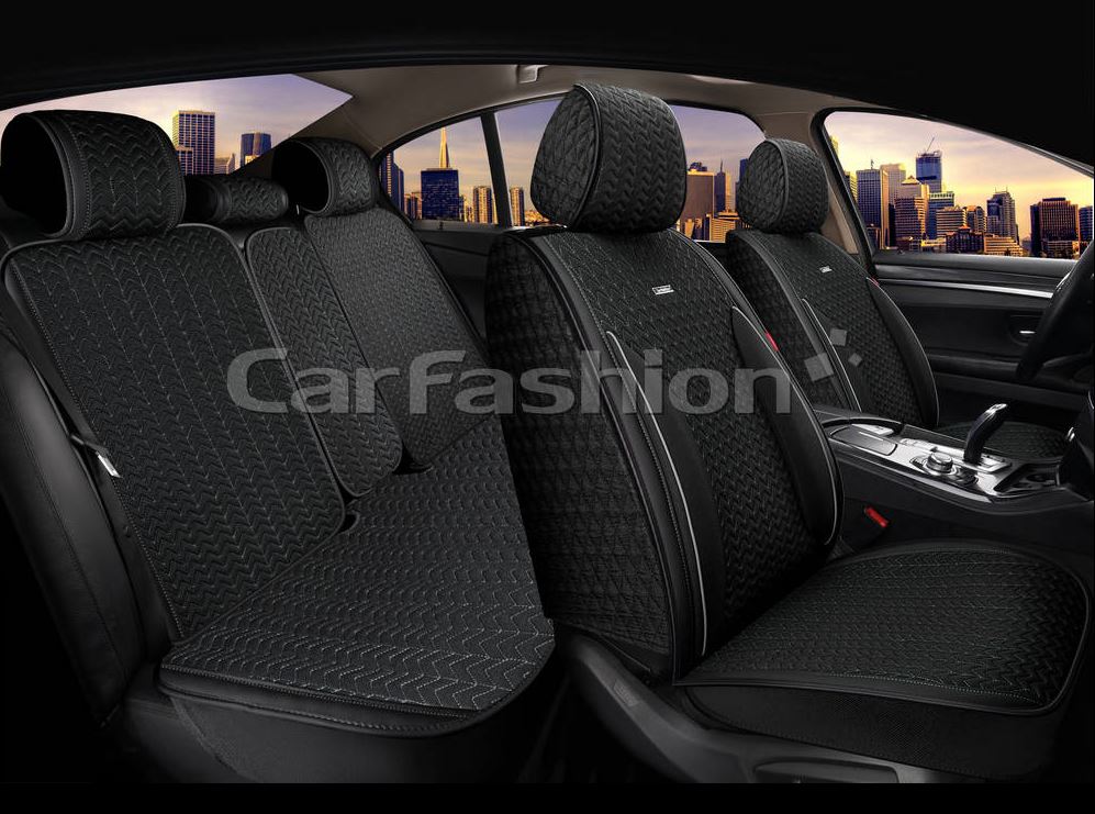 Главная / Чехлы и накидки на сиденья / Накидки на сиденья PREMIUM / Комплект Накидок «SHEVRON TWEED PLUS» черный/черный/серый/серый