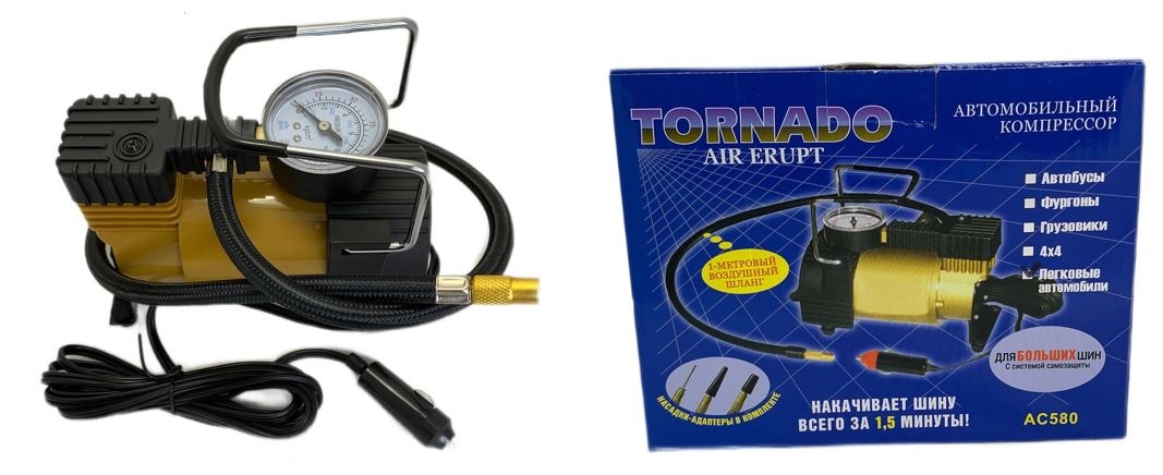 Главная / Компрессоры автомобильные. Насосы ножные, ручные / Компрессоры автомобильные / Компрессор 30 л/мин TORNADO АC-580, 12В без сумки, пласт корпус, шланг 0,82 м, кабель 2,4м /1/8/