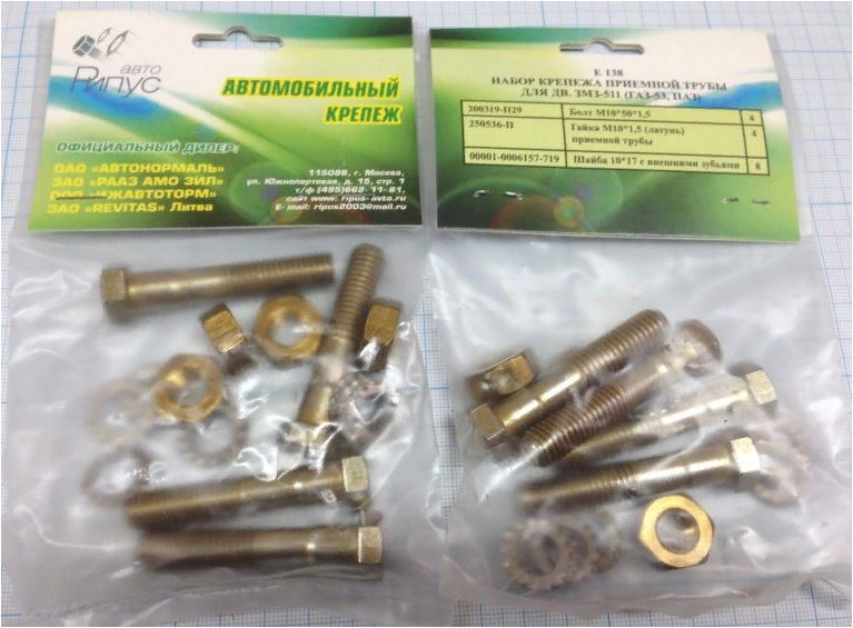 Главная / Крепёж автомобильный / Наборы крепежа / Набор крепежа приемной трубы для дв. ЗМЗ-511 (ГАЗ-53, ПАЗ) Рипус АВТО