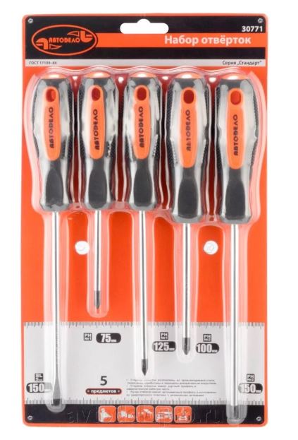 Главная / Инструмент / Отвертки. Наборы отверток / Набор отверток 5 предметов АвтоDело (30771)